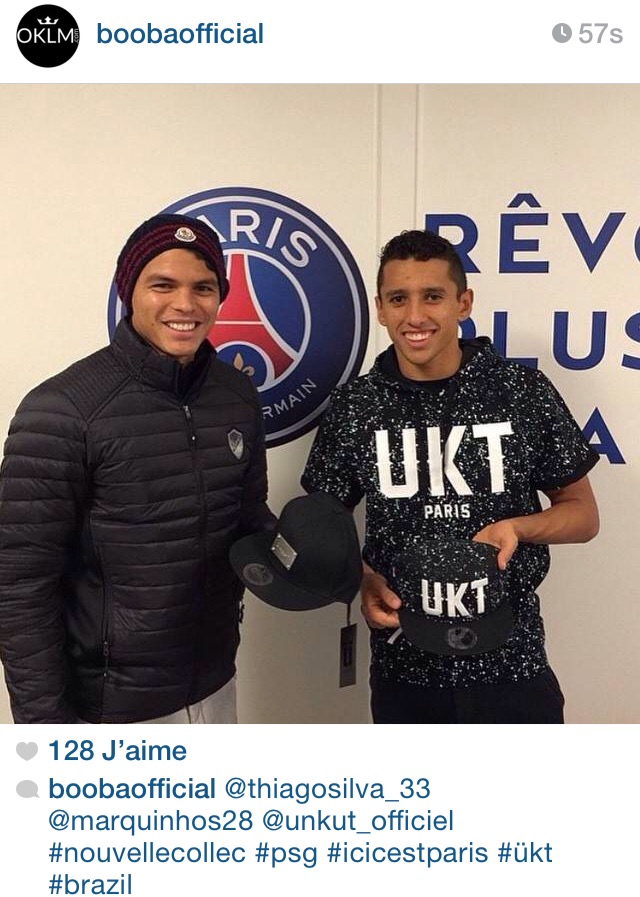 Le cliché a sans doute été pris après le match nul du PSG ce week-end à domicile contre Caen. Déjà très prisée par les footballeurs la marque du Duc de Boulogne se démocratise de plus en plus chez les stars du ballon rond. L’international Karim Benzema, proche de Booba est d’ailleurs l’une des représentants les plus connus d’ Unkut. Le rappeur ajoute à son post le texte suivant «#nouvellecollec #psg #icicestparis #ükt #brazil».