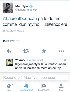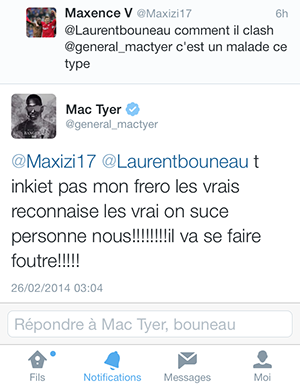 Des déclarations qui ne sont pas tombées dans l’oreille d’un sourd. Mac Tyer a réagi dans la nuit à ces déclarations via des tweets incisifs sur les réseaux sociaux. « Laurent Bouneau parle de moi comme d’un mytho !!!!#encolère » assène Socrate.