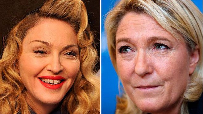 Hier soir Madonna était l’invité du Grand Journal de Canal +. La star de la pop est revenu sur le cas de Marine le Pen à qui elle s’en était pris en juin dernier. En effet, sur Instagram elle avait regretté la montée du Fn en postant la une du journal Libération avec Marine le Pen. Puis elle avait incité ses followers à lutter contre le fascisme et les discriminations. De plus, en 2012 pendant sa tournée elle avait diffusée sur les écrans géants le visage de Marine Le Pen avec une croix gamée sur le front.