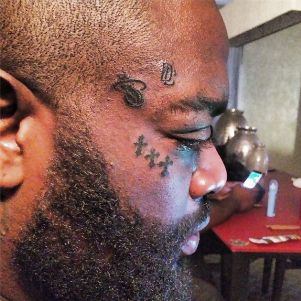 Rick Ross continue sa frénésie des tatouages, il nous en dévoile de nouveaux sur son visage. En mai dernier, il se faisait tatouer « Rich Forever » sur le visage, plus exactement sous sa bouche.
