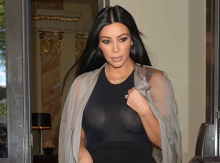 Kim Kardashian a donc accompagné son mari en Angleterre pour l’évènement. Samedi dernier, à Londres, le couple couple était attendu à la sortie de leur hôtel. Une fois de plus, Kim Kardashian a ravi les photographes qui étaient présent. Kim portait une robe très moulante, comme à son habitude. Petite nouveauté, le haut de sa robe était complètement transparente. La jeune maman n’avait pas pris la peine de mettre un soutient gorge. Ses seins et ses tétons étaient donc complètement visibles. La situation n’a pas dérangé la femme de Kanye qui fixe fièrement les objectifs des photographes. Kim veut certainement montrer que même enceinte de son dernier enfant elle reste sexy.