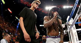 Justin Bieber et Lil Wayne accompagnent Floyd Mayweather Jr. sur le ring