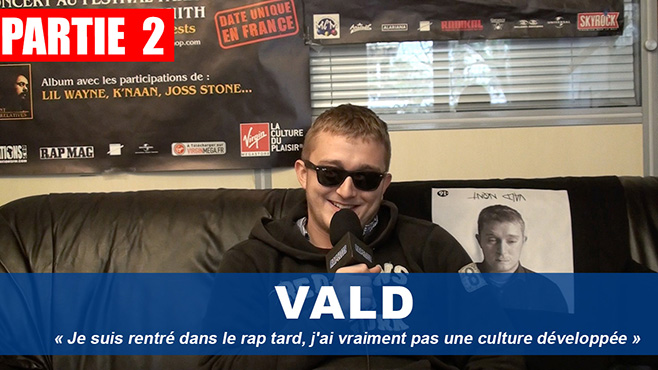 Deuxième partie de notre interview consacrée à Vald, l’artiste nous avoue qu’il n’a pas un grand bagage de connaissances sur le rap. Selon lui, cela s’explique par le fait qu’il soit «rentré dans le rap tard». Néanmoins, il dit vouloir rattraper le temps perdu. Il explique cette situation par le fait que sa famille n’écoute pas de musique. «Mes parents n’ont pas de grands goûts musicaux particuliers» déclare t-il.