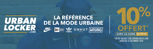 Pendant tout le mois de décembre, avec Rapelite profitez d’une offre exceptionnelle de 10% de réduction dans votre commande sur UrbanLocker.com, la boutique en ligne tendance du moment. Pour profiter de cette offre, lors de votre achat utilisez le code ELITE15. Fan du club PSG? Découvrez une sélection de produit avec des maillots Nike PSG remisés jusqu’à – 15%.