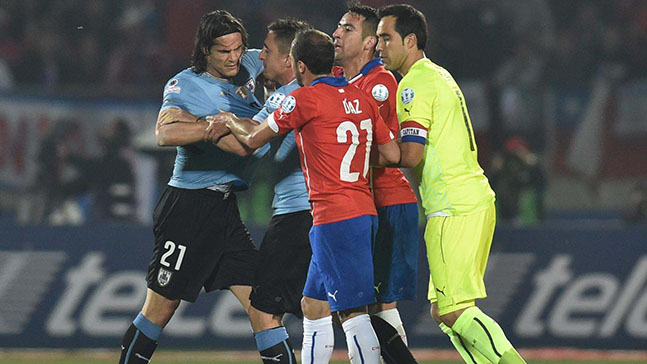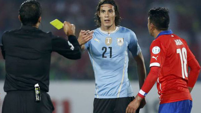 Cavani a décidé de quand même prendre part au match contre le Chili. Pendant la deuxième mi-temps du match, le chilien Jara s’approche de lui et le provoque en tentant de lui mettre un doigt dans l’anus. Cavani le repousse en lui assénant un coup de poing. Déjà averti, l’attaquant reçoit un second carton jaune et est exclu du match. Suite à cette exclusion Cavani restera quelques instants sur le terrain, furieux. Jara, lui, terminera la rencontre. «C’était une provocation. Quand on arrive à ce stade d’un tournoi, il faut les meilleurs arbitres et agir de même avec les deux équipes: en première période, la Chili a fait sept-huit fautes qui auraient mérité un avertissement», a pesté le le coach uruguayen après la rencontre. Beaucoup se demandent pourquoi Jara n’a pas été également exclu, l’arbitre assistant n’a semble t’il pas vu son geste.
