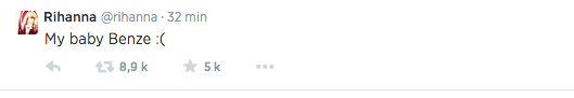 Son premier tweet est destiné à son joueur français favori Karim Benzema. «My baby Benze :(» tweete affectueusement la princesse de la Barbade qui doit partager la déception de l’attaquant tricolore.