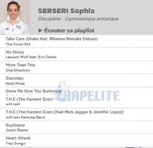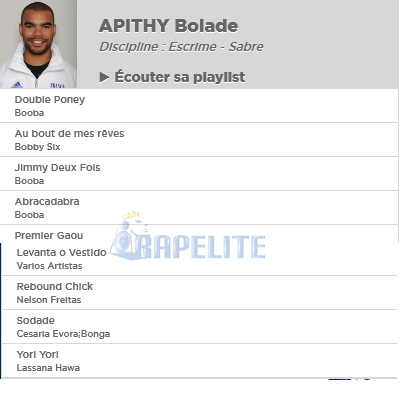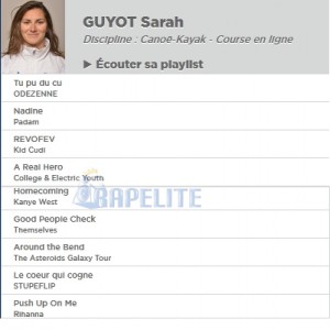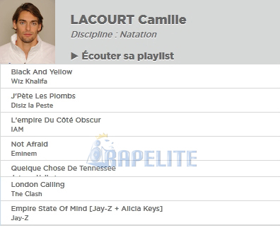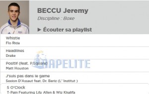 A l’occasion des Jeux Olympiques de Londres nos représentants français nous dévoilent leurs playlists musicales personnelles.Ladji Doucouré ,Laura Flessel,Camille Lacourt en passant par Margaux Farell ,Sophia Serseri,Enzo Lefort, sans oublier Bolade Apithy,Sarah Guyot,Jeremy Beccu et Pierre-Jean PELTIER tous se prêtent au jeu .