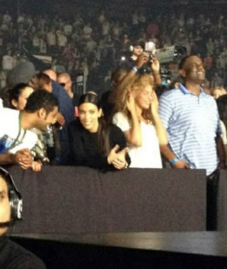 Beyoncé et Kim Kardashian ont affiché leur complicité lors du passage de Jay-Z et Kanye West à Birmingham vendredi dernier pour le « Watch The Throne Tour ».