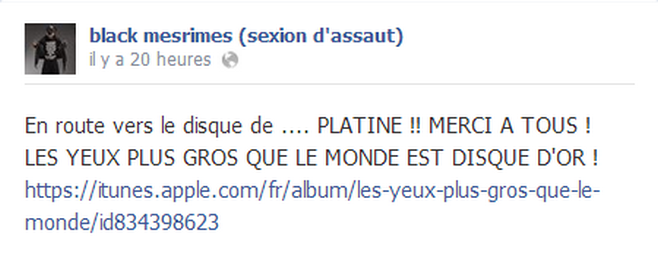 Sur son compte Facebook, Black Mesrimes a annoncé l’information.
