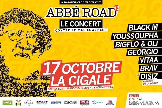 Le 17 octobre prochain se déroulera la Journée mondiale du refus de la misère. A cette occasion, la Fondation Abbé Pierre organisera un concert à La Cigale de Paris : « ABBÉ ROAD #3 ».