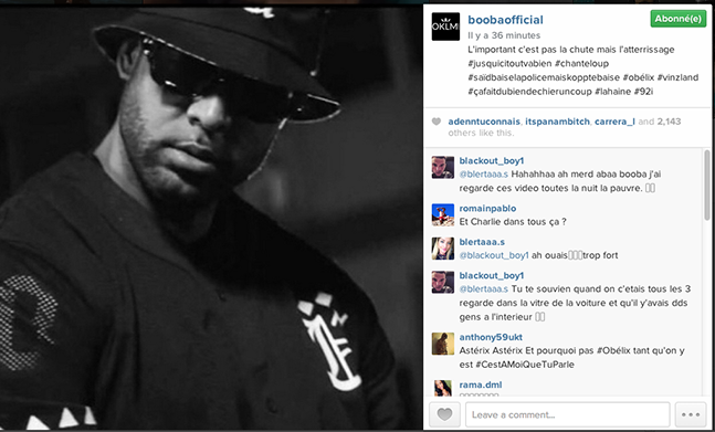 Aujourd’hui, dans un post au premier abord anodin, Booba s’en prend à l’acteur français via un hastag dont lui seul a le secret. Reprenant les célèbres phases du film culte La Haine, il écrit «L’important c’est pas la chute mais l’atterrissage #jusquicitoutvabien #chanteloup #saïdbaiselapolicemaiskopptebaise #obélix #vinzland #çafaitdubiendechieruncoup # lahaine #92i». Autant dire que ces deux là ne partiront pas en vacances ensemble.