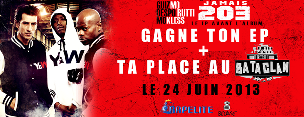 Voici la liste des participants tirés au sort ayants gagné leur EP JAMAIS 203 de Guizmo, Mokless, Despo Rutti , dans le cadre du jeux concours organisé par Rapelite.com.