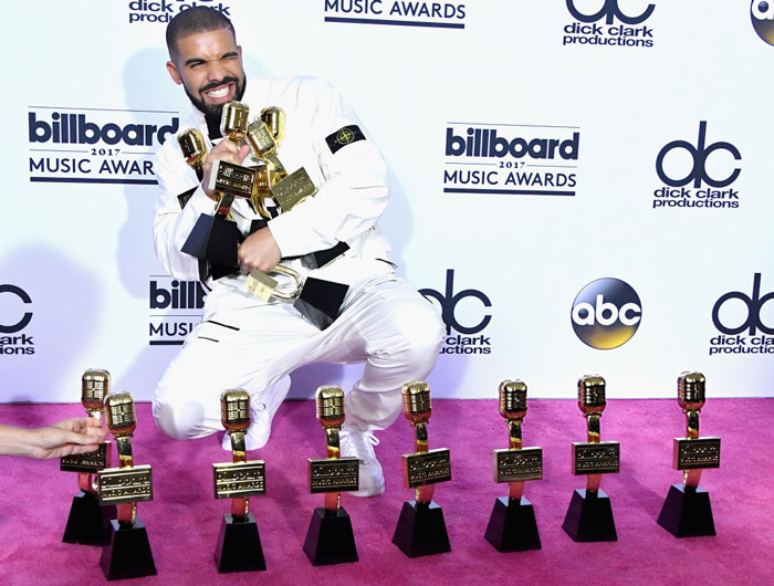 Cette année le rappeur/chanteur Drake a été sacré 13 fois lors de cette 25ème cérémonie des Billboard Music Awards. Nommé dans 22 catégories, il est reparti notamment avec les trophées de « meilleur artiste, «  meilleur interprète masculin » et « meilleur album rap » pour « Views ». Il a de fait dépassé le record détenu par la chanteuse anglaise Adèle, qui était repartie avec 12 trophées en 2012.