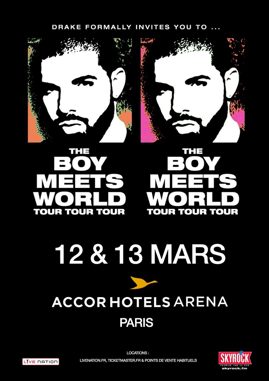 Il sera de passage à Paris, à l’ Accor Hotel Arena, le dimanche 12 et le lundi 13 mars 2017. Si vous êtes fans du rappeur de Toronto, sachez que les billets seront mis en vente à partir de 10 heures, ce vendredi 14 octobre, sur le site de live nation.