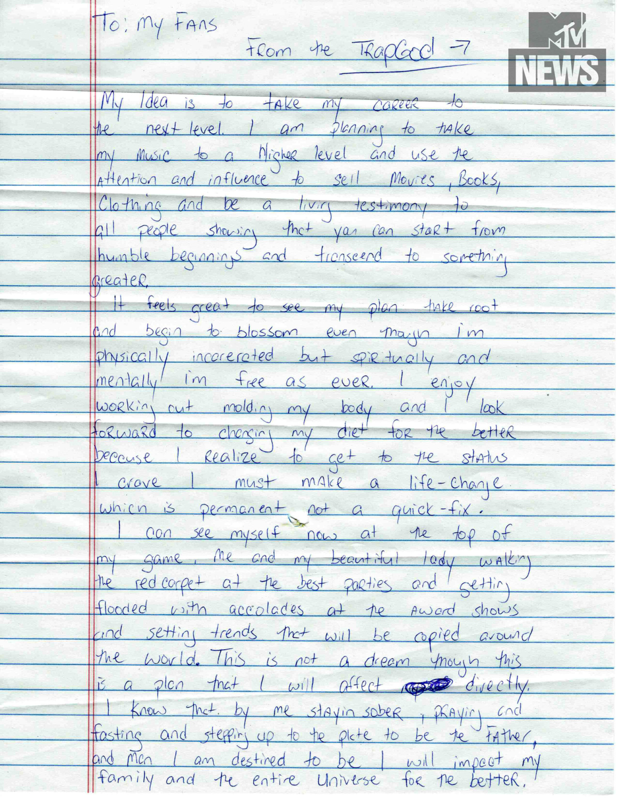 Même s’il est derrière les barreaux, Gucci Mane n’en oublie pas ses fans et leur écrit une lettre où il explique sa volonté de changer. Dans cette lettre pleine d’humilité, parue via MTV News, il explique qu’il souhaite changer de comportement, être un meilleur homme et un meilleur père, en restant clean : « Je sais qu’en restant sobre, priant et faisant en sorte de devenir le père et l’homme que je suis sensé être, ma famille et l’univers dans son ensemble ne s’en porteront que mieux ».
