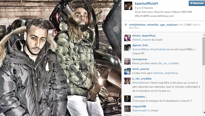 Il y a quelques heures, le rappeur de Sevran a posté une photo avec Lacrim, en déclarant : «Gros feat avec #Lacrim pour l’album #93 #94#ELCHAPO www.bttfshop.com»