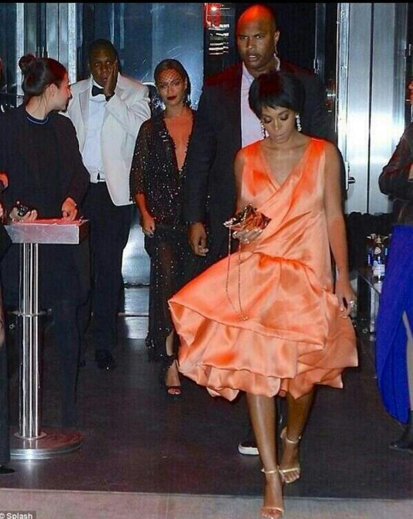 Les photos de Jay-Z, Beyoncé et Solange à la sortie de l’ascenseur :