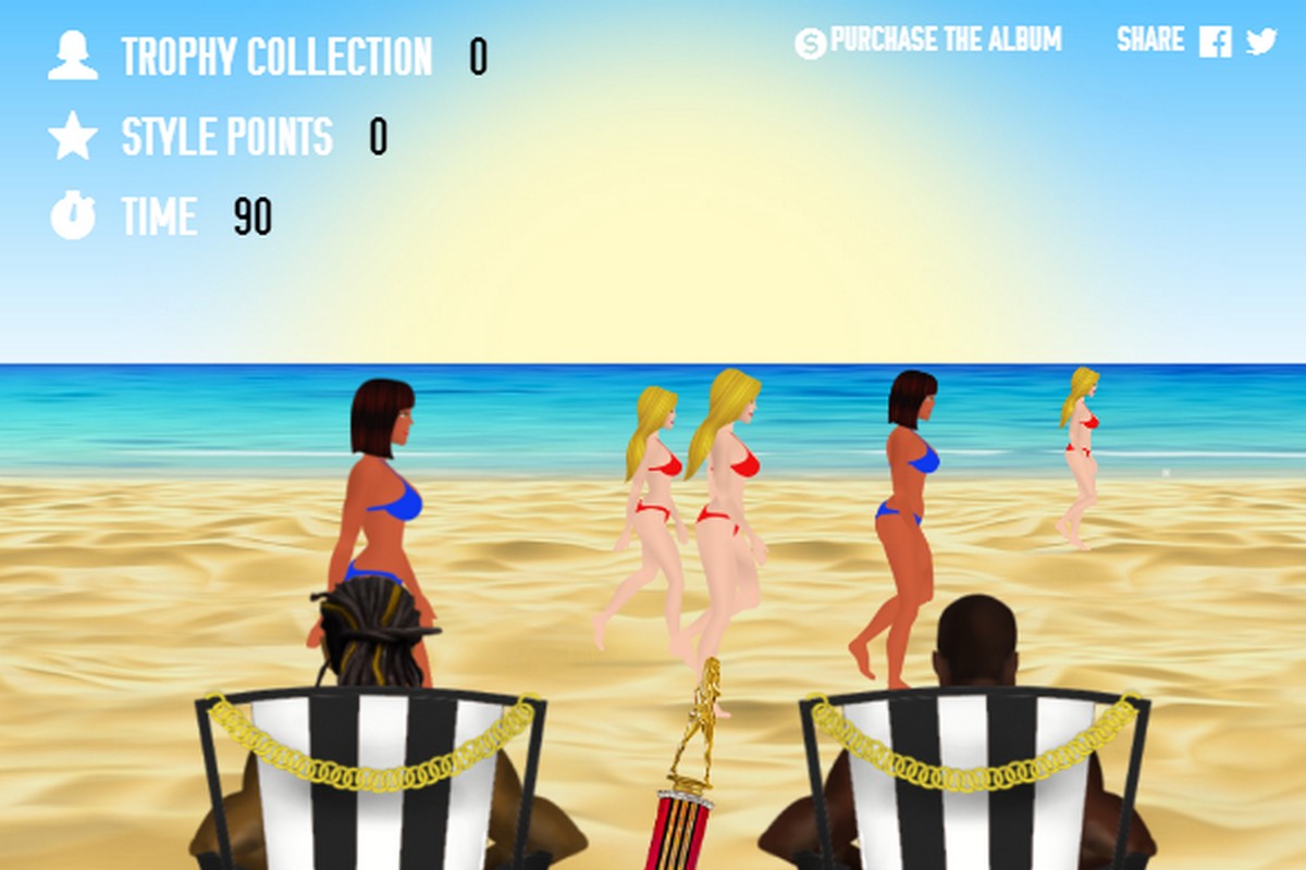Dans le jeu, vous pouvez prendre le contrôle et viser, avec la souris sur les jeunes filles. En fond sonore, le titre I Won, en l’honneur de leurs propres femmes trophés, Kim Kardashian et Ciara.