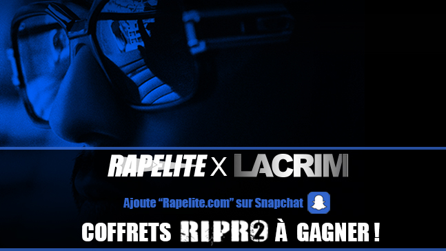 Pour fêter le disque d’or de Lacrim, Rapelite.com te fait gagner des coffrets RIPRO 2. Pour participer au jeu concours, rien de plus simple. Ajoute « Rapelite.com » sur Snapchat et répond à la question qui apparaîtra avec le Coffret RIPRO2 en fond. Les gagnants seront tirés au sort parmi ceux qui auront bien répondu à la question.