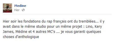 Kery James et Medine ont annoncé qu’ils s’étaient réunis en studio avec d’autres grosses pointures du rap français, telles que Lino ou Youssoupha, pour préparer un projet commun.