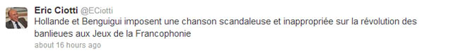 Le Président du Conseil général des Alpes-Maritimes déclare sur son compte Twitter que Kery James leur a été « imposé » par le gouvernement par l’intermédiaire de Yamina Benguigui la Ministre déléguée à la Francophonie.