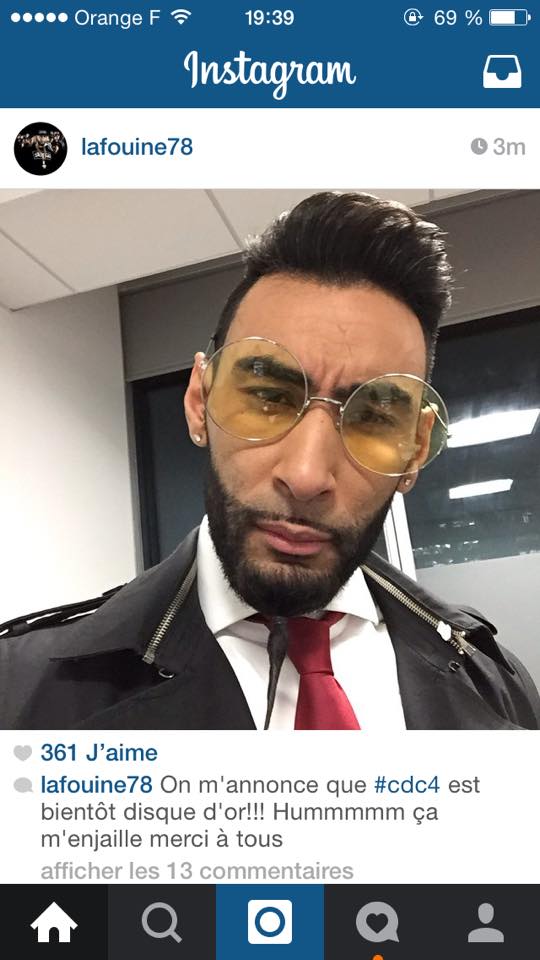 Il y a quelques minutes, Fouiny a publié un post sur son compte Instagram accompagné du texte suivant : « On m’annonce que #CDC4 est bientôt Disque d’Or !!! Hummmmm ça m’enjaille merci à tous. »