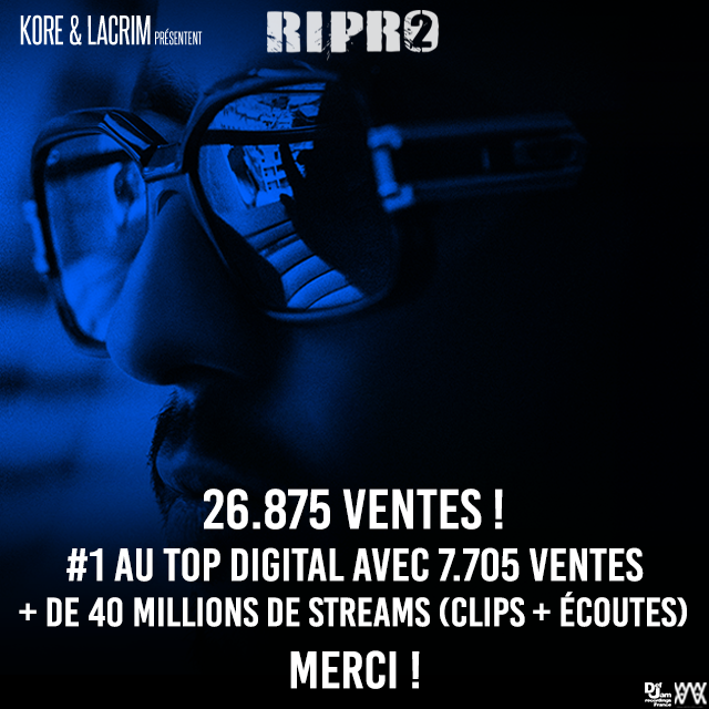 @Lacrim_Officiel #Ripro2 top1 ventes digitales 7705 ex top15 ventes physiques 19170 ex Total: 26875 ex
