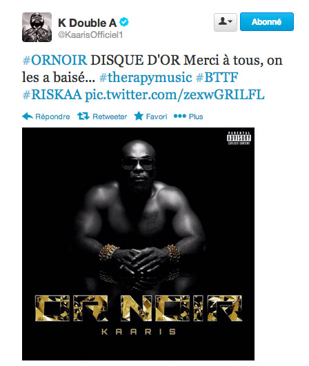Paru le 21 octobre dernier, l’album OR NOIR de Kaaris est désormais disque d’or. Le rappeur l’a annoncé en fin de soirée sur son compte Twitter avec une formule qu’on lui connait « #ORNOIR DISQUE D’OR Merci à tous, on les a baisé… #therapymusic #BTTF » déclare t-il.