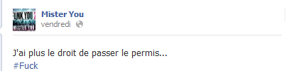 Pas de projet musical en vue pour Mister You, il en est de même pour le permis apparemment … L’artiste partage l’information à ses fans sur son Facebook.