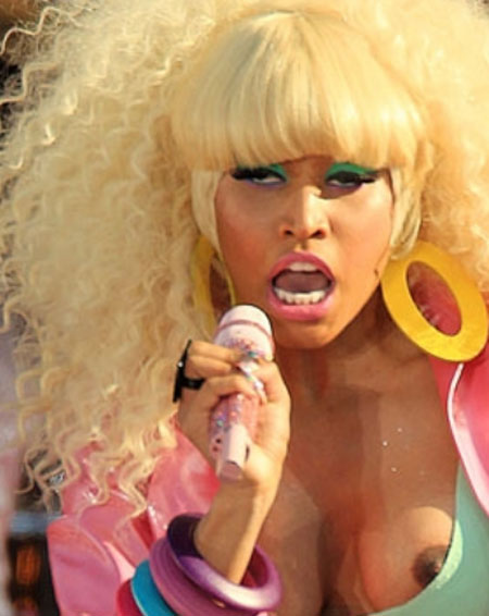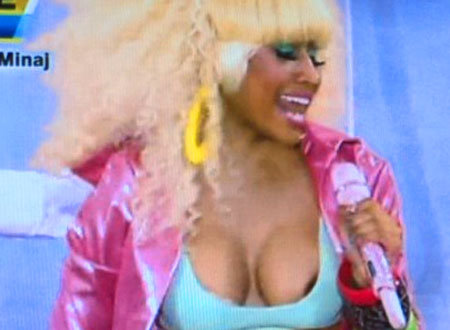 En représentation pour le concert Good Morning America à New York, Nicki Minaj prise par son show dévoile son sein sur scène.