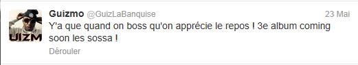 Le rappeur Guizmo aka « La Banquise » vient d’annoncer sur son compte Twitter la préparation d’un troisième album, dont le titre reste encore inconnu.