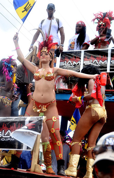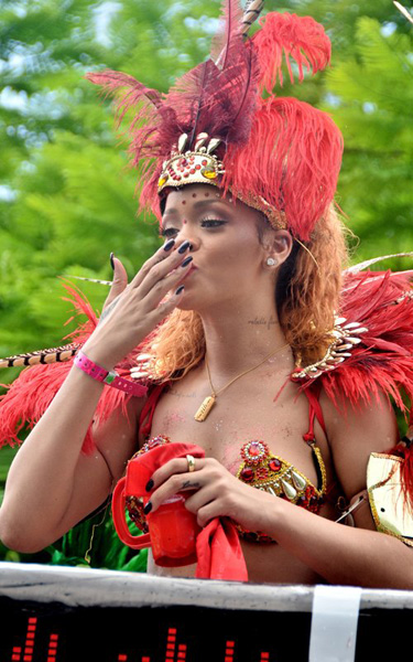 Actuellement en période de repos, Rihanna en a profité pour faire une halte à la Barbade son pays natal. Elle a notamment participé au Kadooment Day , une parade qui symbolise la fin de la période des récoltes du pays. Comme à son habitude, la chanteuse est sortie très légèrement .