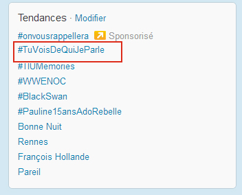 En effet, le hahstag « #TuVoisDeQuiJeParle » était en Trend Topics (TT) sur le réseau social hier soir. Cela signifie que de nombreux utilisateurs ont accompagné leur tweets de ce hastag.