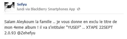 Sefyu vient de dévoiler le nom de son 4ème album. Il s’appellera tout simplement « Yusef ».